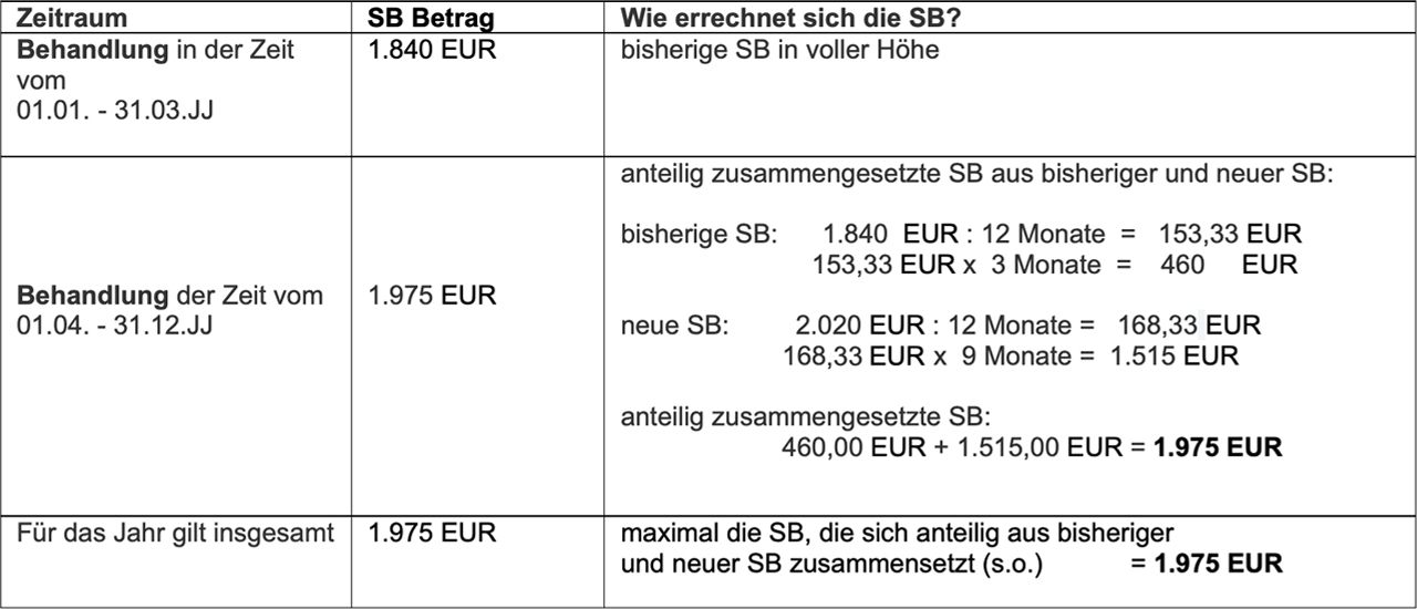 Wir berücksichtigen maximal die SB, die sich anteilig aus bisheriger und neuer SB zusammensetzt.