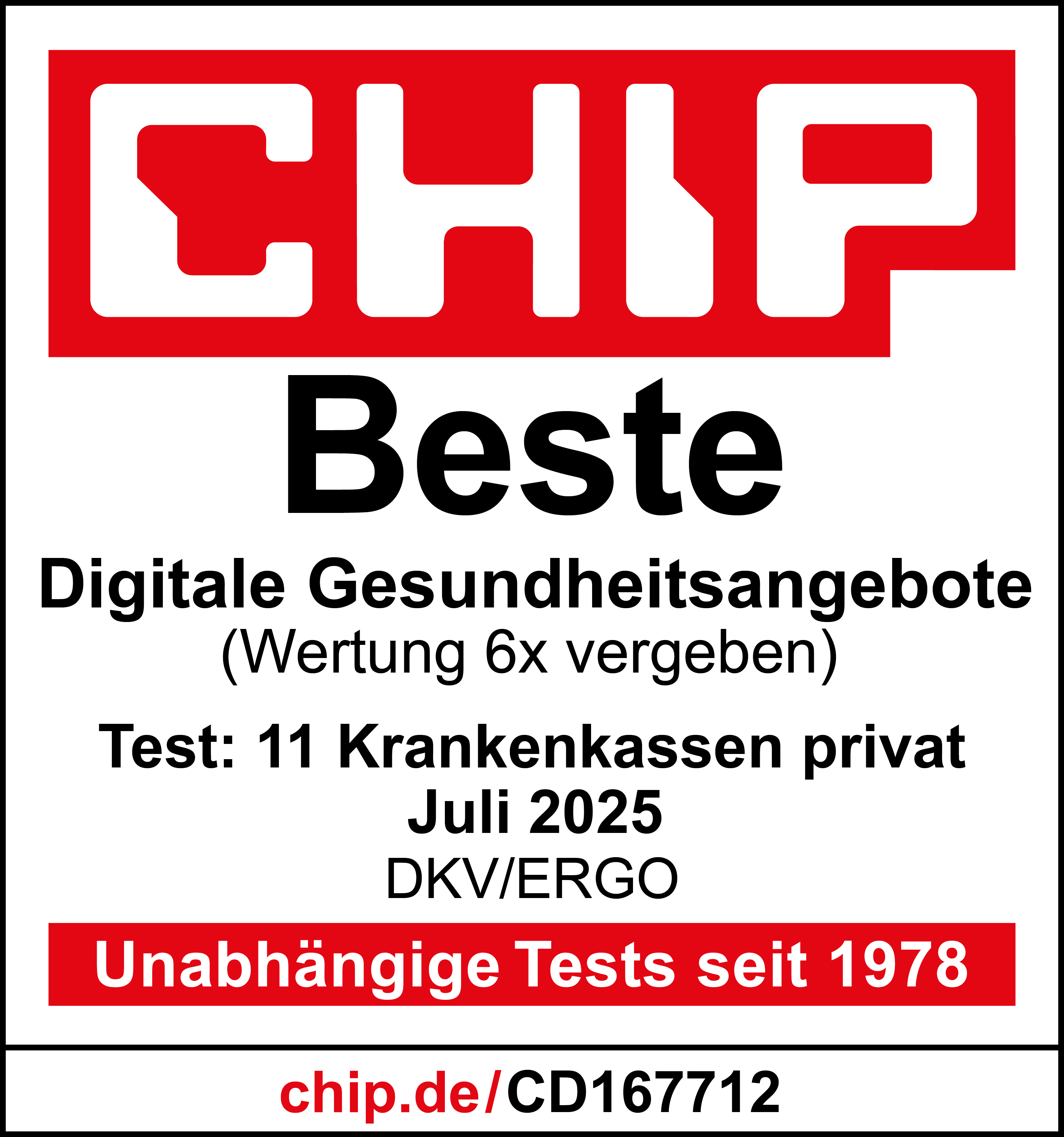 Mit innovativen digitalen Gesundheits-Apps und Online-Programmen unterstützen wir unsere Versicherten im Alltag. Die digitalen Services unserer Kooperationspartner erleichtern zum Beispiel das Umsetzen eines gesunden Lebensstils oder unterstützen Patienten mit akuten/chronischen Erkrankungen. Die Digitalen Gesundheitsangebote der DKV wurden vom IT-Fachmagazin Chip 2025 mit der Bestnote bewertet.